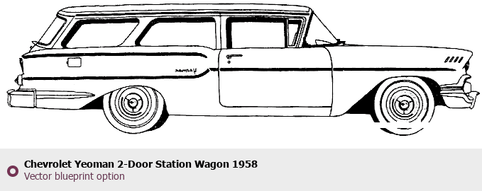 Raster blueprint of the 1958 Chevrolet Yeoman 2-Door Station Wagon Wagon. This free downloadable image can be used for graphic projects, digital design, and 3D modeling. The file provides accurate exterior proportions of the vehicle. Model year: 1958. Body type: Wagon.