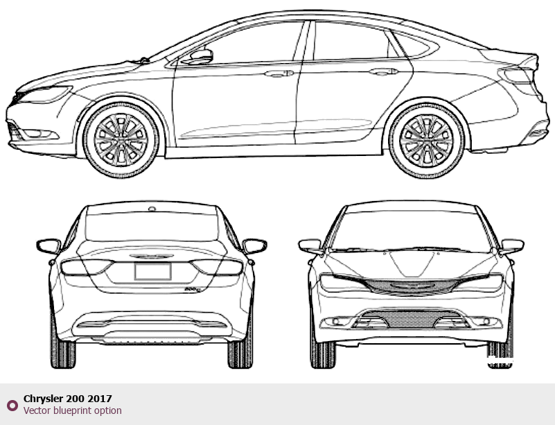 Raster blueprint of the 2017 Chrysler 200 Tag. This free downloadable image can be used for graphic projects, digital design, and 3D modeling. The file provides accurate exterior proportions of the vehicle. Model year: 2017. Body type: Tag.