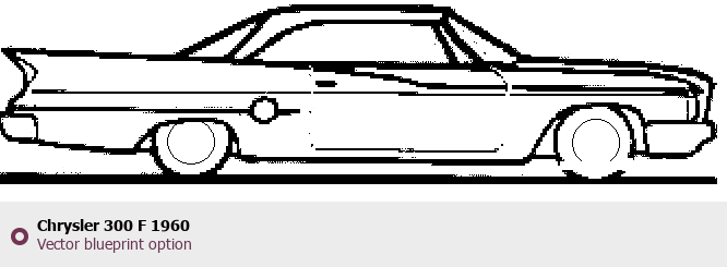 Raster blueprint of the 1960 Chrysler 300 F Tag. This free downloadable image can be used for graphic projects, digital design, and 3D modeling. The file provides accurate exterior proportions of the vehicle. Model year: 1960. Body type: Tag.