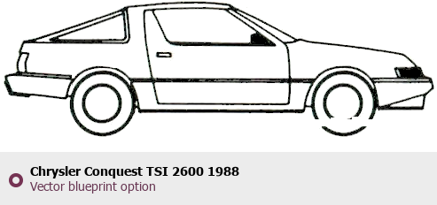 Raster blueprint of the 1988 Chrysler Conquest TSI 2600 Tag. This free downloadable image can be used for graphic projects, digital design, and 3D modeling. The file provides accurate exterior proportions of the vehicle. Model year: 1988. Body type: Tag.