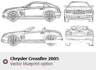 Raster blueprint of the 2005 Chrysler Crossfire Tag. This free downloadable image can be used for graphic projects, digital design, and 3D modeling. The file provides accurate exterior proportions of the vehicle. Model year: 2005. Body type: Tag.