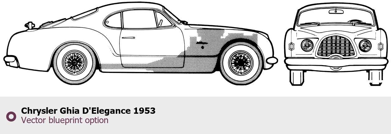 Raster blueprint of the 1953 Chrysler Ghia D'Elegance Tag. This free downloadable image can be used for graphic projects, digital design, and 3D modeling. The file provides accurate exterior proportions of the vehicle. Model year: 1953. Body type: Tag.