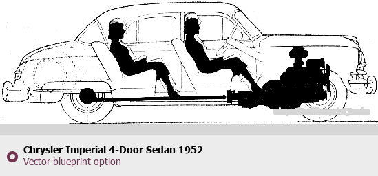 Raster blueprint of the 1952 Chrysler Imperial 4-Door Sedan Sedan. This free downloadable image can be used for graphic projects, digital design, and 3D modeling. The file provides accurate exterior proportions of the vehicle. Model year: 1952. Body type: Sedan.