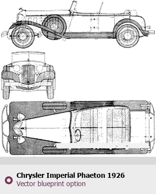 Raster blueprint of the 1926 Chrysler Imperial Phaeton Phaeton. This free downloadable image can be used for graphic projects, digital design, and 3D modeling. The file provides accurate exterior proportions of the vehicle. Model year: 1926. Body type: Phaeton.