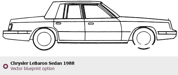 Raster blueprint of the 1988 Chrysler LeBaron Sedan Sedan. This free downloadable image can be used for graphic projects, digital design, and 3D modeling. The file provides accurate exterior proportions of the vehicle. Model year: 1988. Body type: Sedan.