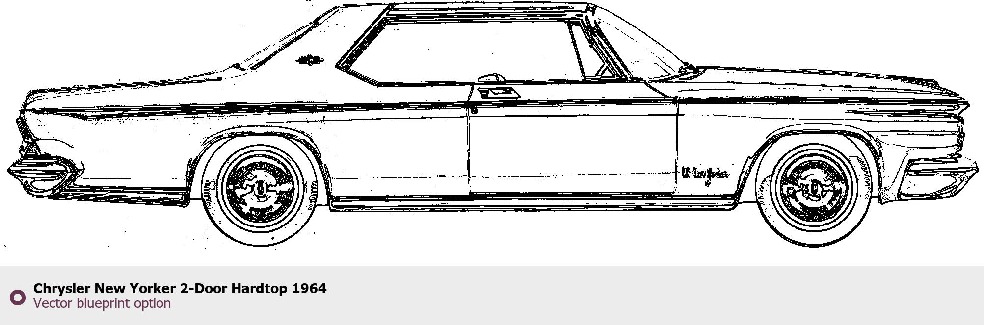 Raster blueprint of the 1964 Chrysler New Yorker 2-Door Hardtop Tag. This free downloadable image can be used for graphic projects, digital design, and 3D modeling. The file provides accurate exterior proportions of the vehicle. Model year: 1964. Body type: Tag.