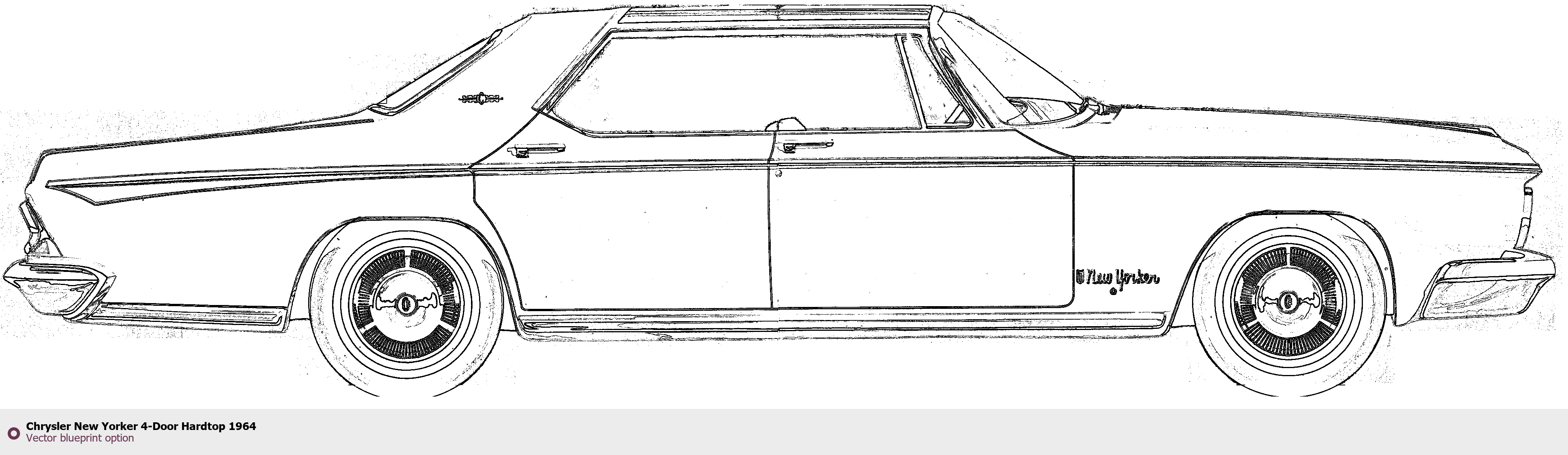 Raster blueprint of the 1964 Chrysler New Yorker 4-Door Hardtop Tag. This free downloadable image can be used for graphic projects, digital design, and 3D modeling. The file provides accurate exterior proportions of the vehicle. Model year: 1964. Body type: Tag.