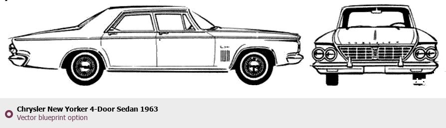 Raster blueprint of the 1963 Chrysler New Yorker 4-Door Sedan Sedan. This free downloadable image can be used for graphic projects, digital design, and 3D modeling. The file provides accurate exterior proportions of the vehicle. Model year: 1963. Body type: Sedan.