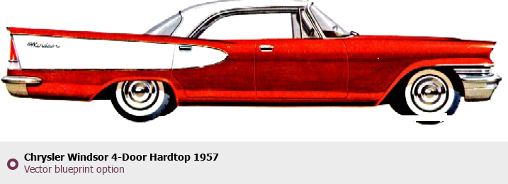 Raster blueprint of the 1957 Chrysler Windsor 4-Door Hardtop Tag. This free downloadable image can be used for graphic projects, digital design, and 3D modeling. The file provides accurate exterior proportions of the vehicle. Model year: 1957. Body type: Tag.