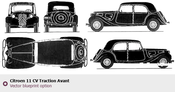 Raster blueprint of the Citroen 11 CV Traction Avant Tag. This free downloadable image can be used for graphic projects, digital design, and 3D modeling. The file provides accurate exterior proportions of the vehicle. Body type: Tag.