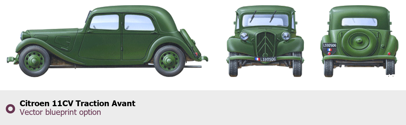 Raster blueprint of the Citroen 11CV Traction Avant Tag. This free downloadable image can be used for graphic projects, digital design, and 3D modeling. The file provides accurate exterior proportions of the vehicle. Body type: Tag.