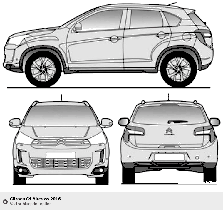 Raster blueprint of the 2016 Citroen C4 Aircross Tag. This free downloadable image can be used for graphic projects, digital design, and 3D modeling. The file provides accurate exterior proportions of the vehicle. Model year: 2016. Body type: Tag.