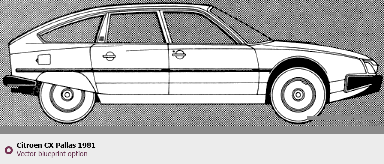 Raster blueprint of the 1981 Citroen CX Pallas Tag. This free downloadable image can be used for graphic projects, digital design, and 3D modeling. The file provides accurate exterior proportions of the vehicle. Model year: 1981. Body type: Tag.
