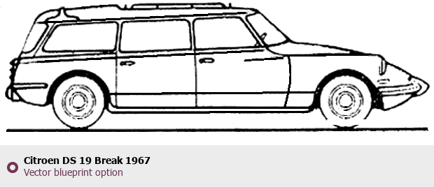Raster blueprint of the 1967 Citroen DS 19 Break Wagon. This free downloadable image can be used for graphic projects, digital design, and 3D modeling. The file provides accurate exterior proportions of the vehicle. Model year: 1967. Body type: Wagon.