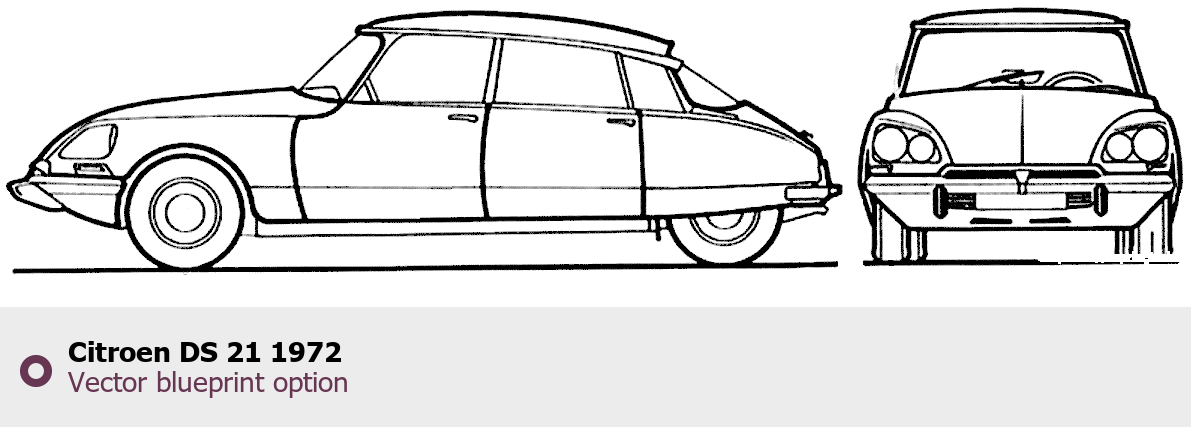 Raster blueprint of the 1972 Citroen DS 21 Tag. This free downloadable image can be used for graphic projects, digital design, and 3D modeling. The file provides accurate exterior proportions of the vehicle. Model year: 1972. Body type: Tag.