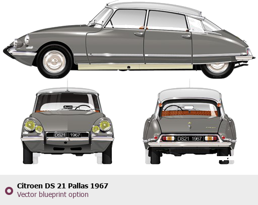 Raster blueprint of the 1967 Citroen DS 21 Pallas Tag. This free downloadable image can be used for graphic projects, digital design, and 3D modeling. The file provides accurate exterior proportions of the vehicle. Model year: 1967. Body type: Tag.