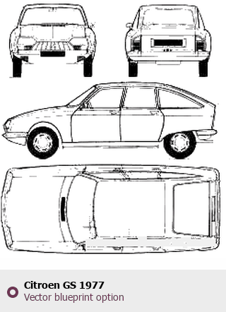 Raster blueprint of the 1977 Citroen GS Tag. This free downloadable image can be used for graphic projects, digital design, and 3D modeling. The file provides accurate exterior proportions of the vehicle. Model year: 1977. Body type: Tag.