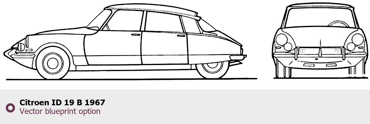 Raster blueprint of the 1967 Citroen ID 19 B Tag. This free downloadable image can be used for graphic projects, digital design, and 3D modeling. The file provides accurate exterior proportions of the vehicle. Model year: 1967. Body type: Tag.