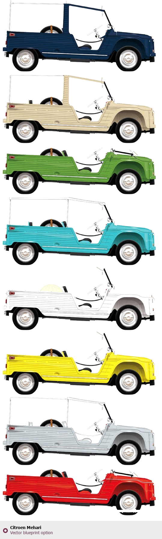 Raster blueprint of the Citroen Mehari Tag. This free downloadable image can be used for graphic projects, digital design, and 3D modeling. The file provides accurate exterior proportions of the vehicle. Body type: Tag.