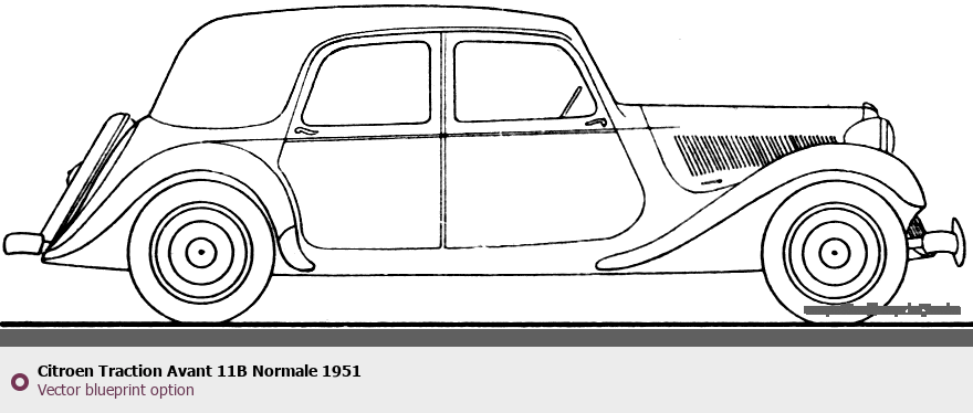 Raster blueprint of the 1951 Citroen Traction Avant 11B Normale Tag. This free downloadable image can be used for graphic projects, digital design, and 3D modeling. The file provides accurate exterior proportions of the vehicle. Model year: 1951. Body type: Tag.