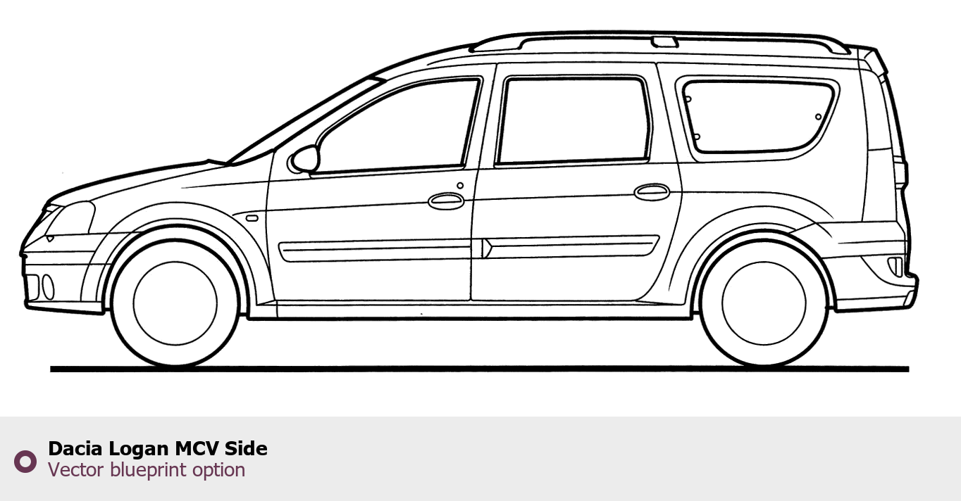 Raster blueprint of the Dacia Logan MCV Side Tag. This free downloadable image can be used for graphic projects, digital design, and 3D modeling. The file provides accurate exterior proportions of the vehicle. Body type: Tag.