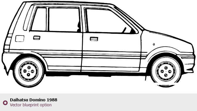 Raster blueprint of the 1988 Daihatsu Domino Tag. This free downloadable image can be used for graphic projects, digital design, and 3D modeling. The file provides accurate exterior proportions of the vehicle. Model year: 1988. Body type: Tag.