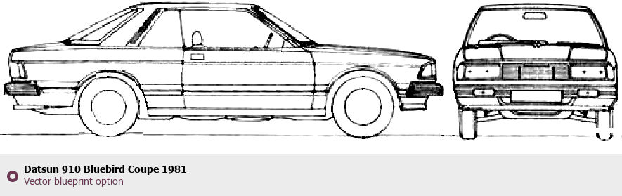 Raster blueprint of the 1981 Datsun 910 Bluebird Coupe Coupe. This free downloadable image can be used for graphic projects, digital design, and 3D modeling. The file provides accurate exterior proportions of the vehicle. Model year: 1981. Body type: Coupe.
