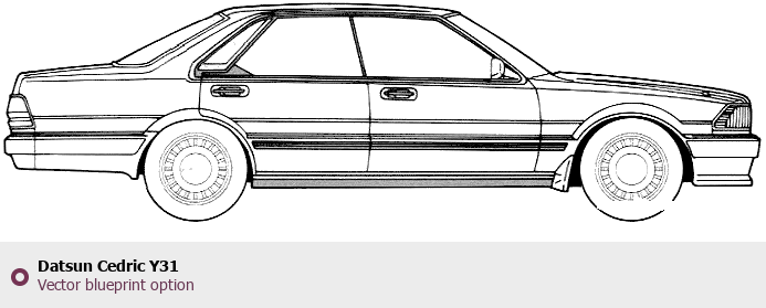 Raster blueprint of the Datsun Cedric Y31 Tag. This free downloadable image can be used for graphic projects, digital design, and 3D modeling. The file provides accurate exterior proportions of the vehicle. Body type: Tag.