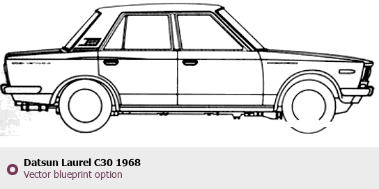 Raster blueprint of the 1968 Datsun Laurel C30 Tag. This free downloadable image can be used for graphic projects, digital design, and 3D modeling. The file provides accurate exterior proportions of the vehicle. Model year: 1968. Body type: Tag.