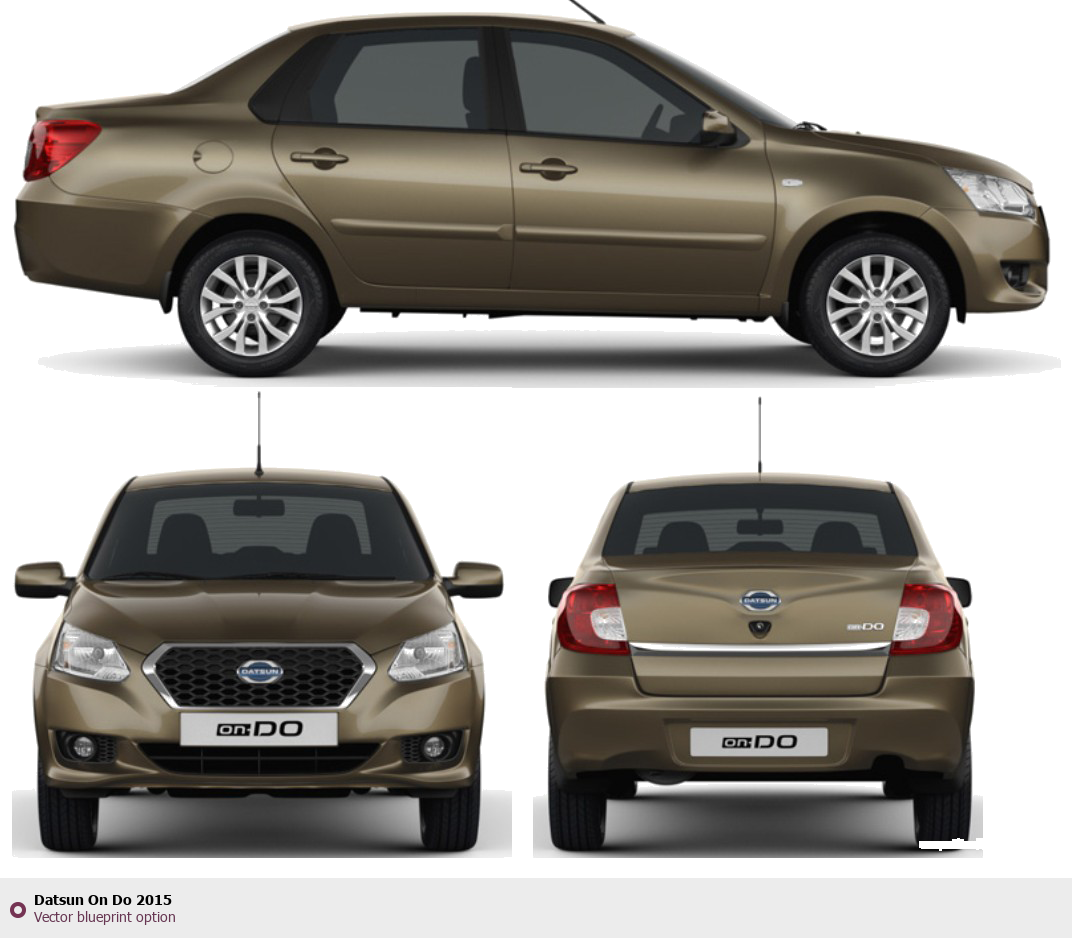 Raster blueprint of the 2015 Datsun On Do Tag. This free downloadable image can be used for graphic projects, digital design, and 3D modeling. The file provides accurate exterior proportions of the vehicle. Model year: 2015. Body type: Tag.