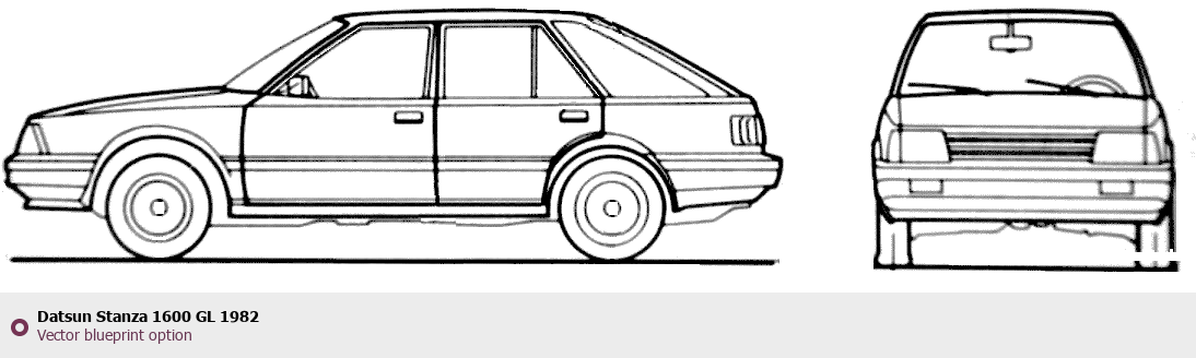 Raster blueprint of the 1982 Datsun Stanza 1600 GL Tag. This free downloadable image can be used for graphic projects, digital design, and 3D modeling. The file provides accurate exterior proportions of the vehicle. Model year: 1982. Body type: Tag.