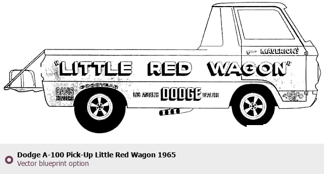 Raster blueprint of the 1965 Dodge A-100 Pick-Up Little Red Wagon Wagon. This free downloadable image can be used for graphic projects, digital design, and 3D modeling. The file provides accurate exterior proportions of the vehicle. Model year: 1965. Body type: Wagon.