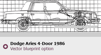 Raster blueprint of the 1986 Dodge Aries 4-Door Tag. This free downloadable image can be used for graphic projects, digital design, and 3D modeling. The file provides accurate exterior proportions of the vehicle. Model year: 1986. Body type: Tag.