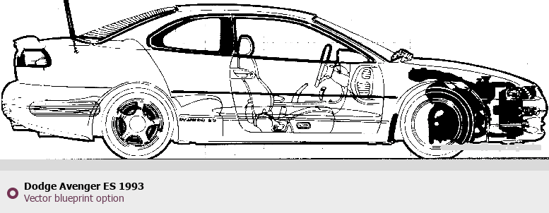 Raster blueprint of the 1993 Dodge Avenger ES Tag. This free downloadable image can be used for graphic projects, digital design, and 3D modeling. The file provides accurate exterior proportions of the vehicle. Model year: 1993. Body type: Tag.