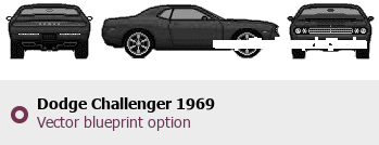 Raster blueprint of the 1969 Dodge Challenger Coupe. This free downloadable image can be used for graphic projects, digital design, and 3D modeling. The file provides accurate exterior proportions of the vehicle. Model year: 1969. Body type: Coupe.