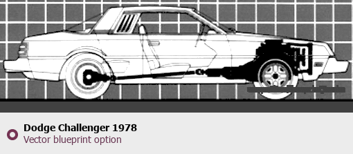 Raster blueprint of the 1978 Dodge Challenger Coupe. This free downloadable image can be used for graphic projects, digital design, and 3D modeling. The file provides accurate exterior proportions of the vehicle. Model year: 1978. Body type: Coupe.