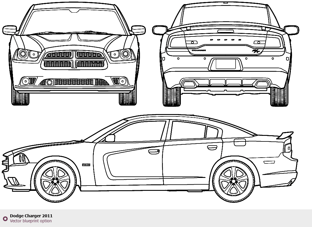 Raster blueprint of the 2011 Dodge Charger Tag. This free downloadable image can be used for graphic projects, digital design, and 3D modeling. The file provides accurate exterior proportions of the vehicle. Model year: 2011. Body type: Tag.