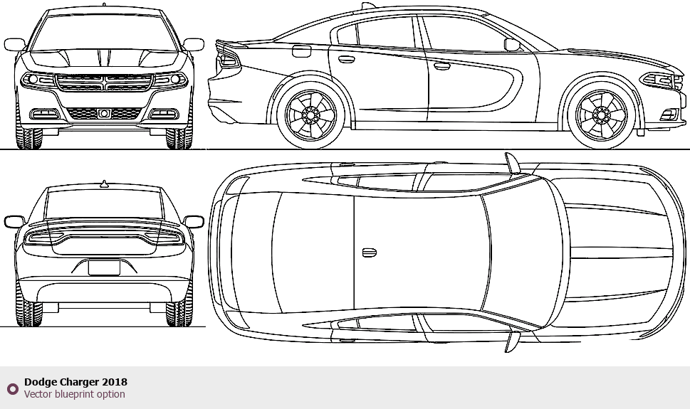 Raster blueprint of the 2018 Dodge Charger Tag. This free downloadable image can be used for graphic projects, digital design, and 3D modeling. The file provides accurate exterior proportions of the vehicle. Model year: 2018. Body type: Tag.