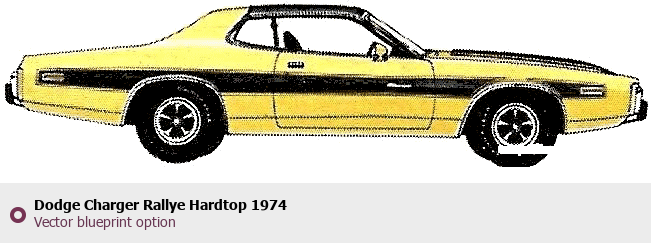 Raster blueprint of the 1974 Dodge Charger Rallye Hardtop Tag. This free downloadable image can be used for graphic projects, digital design, and 3D modeling. The file provides accurate exterior proportions of the vehicle. Model year: 1974. Body type: Tag.