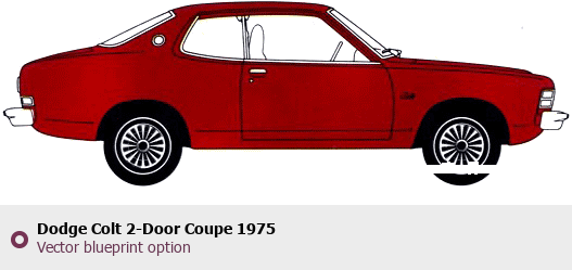 Raster blueprint of the 1975 Dodge Colt 2-Door Coupe Coupe. This free downloadable image can be used for graphic projects, digital design, and 3D modeling. The file provides accurate exterior proportions of the vehicle. Model year: 1975. Body type: Coupe.