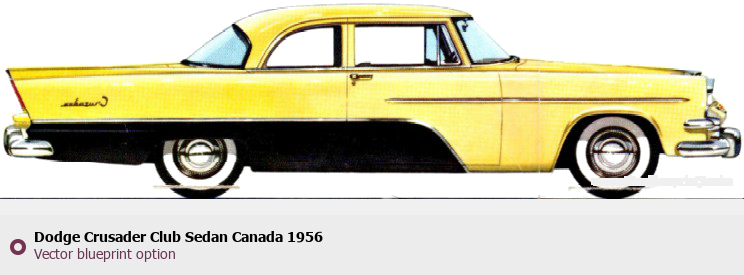 Raster blueprint of the 1956 Dodge Crusader Club Sedan Canada Sedan. This free downloadable image can be used for graphic projects, digital design, and 3D modeling. The file provides accurate exterior proportions of the vehicle. Model year: 1956. Body type: Sedan.