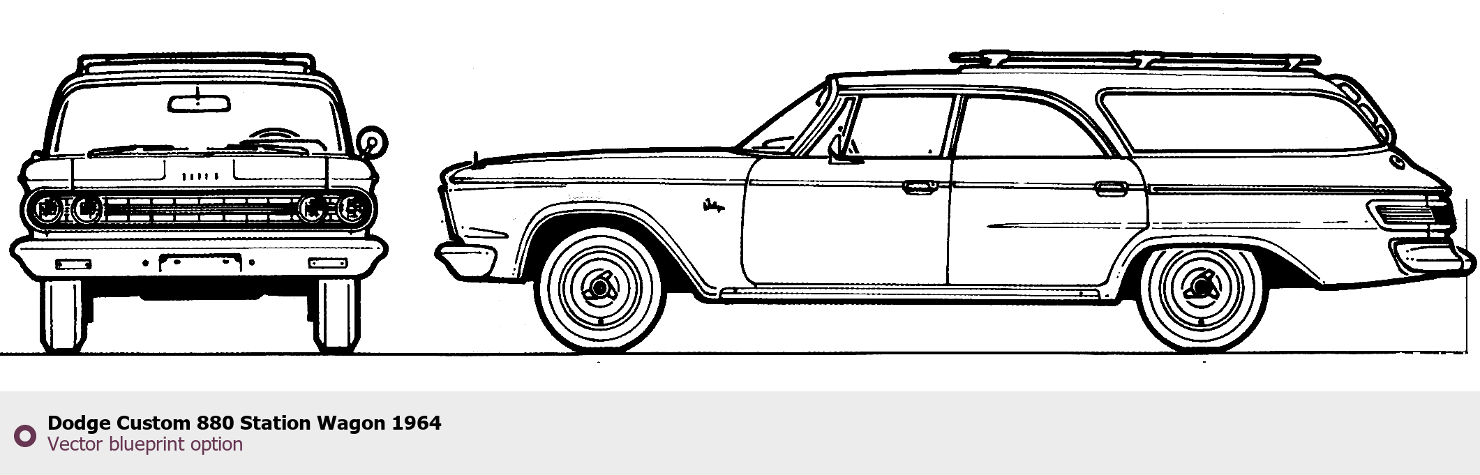Raster blueprint of the 1964 Dodge Custom 880 Station Wagon Wagon. This free downloadable image can be used for graphic projects, digital design, and 3D modeling. The file provides accurate exterior proportions of the vehicle. Model year: 1964. Body type: Wagon.