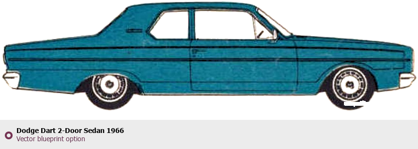 Raster blueprint of the 1966 Dodge Dart 2-Door Sedan Sedan. This free downloadable image can be used for graphic projects, digital design, and 3D modeling. The file provides accurate exterior proportions of the vehicle. Model year: 1966. Body type: Sedan.