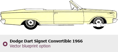 Raster blueprint of the 1966 Dodge Dart Signet Convertible Cabriolet. This free downloadable image can be used for graphic projects, digital design, and 3D modeling. The file provides accurate exterior proportions of the vehicle. Model year: 1966. Body type: Cabriolet.