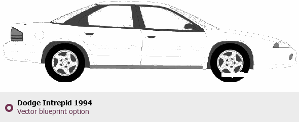 Raster blueprint of the 1994 Dodge Intrepid Sedan. This free downloadable image can be used for graphic projects, digital design, and 3D modeling. The file provides accurate exterior proportions of the vehicle. Model year: 1994. Body type: Sedan.