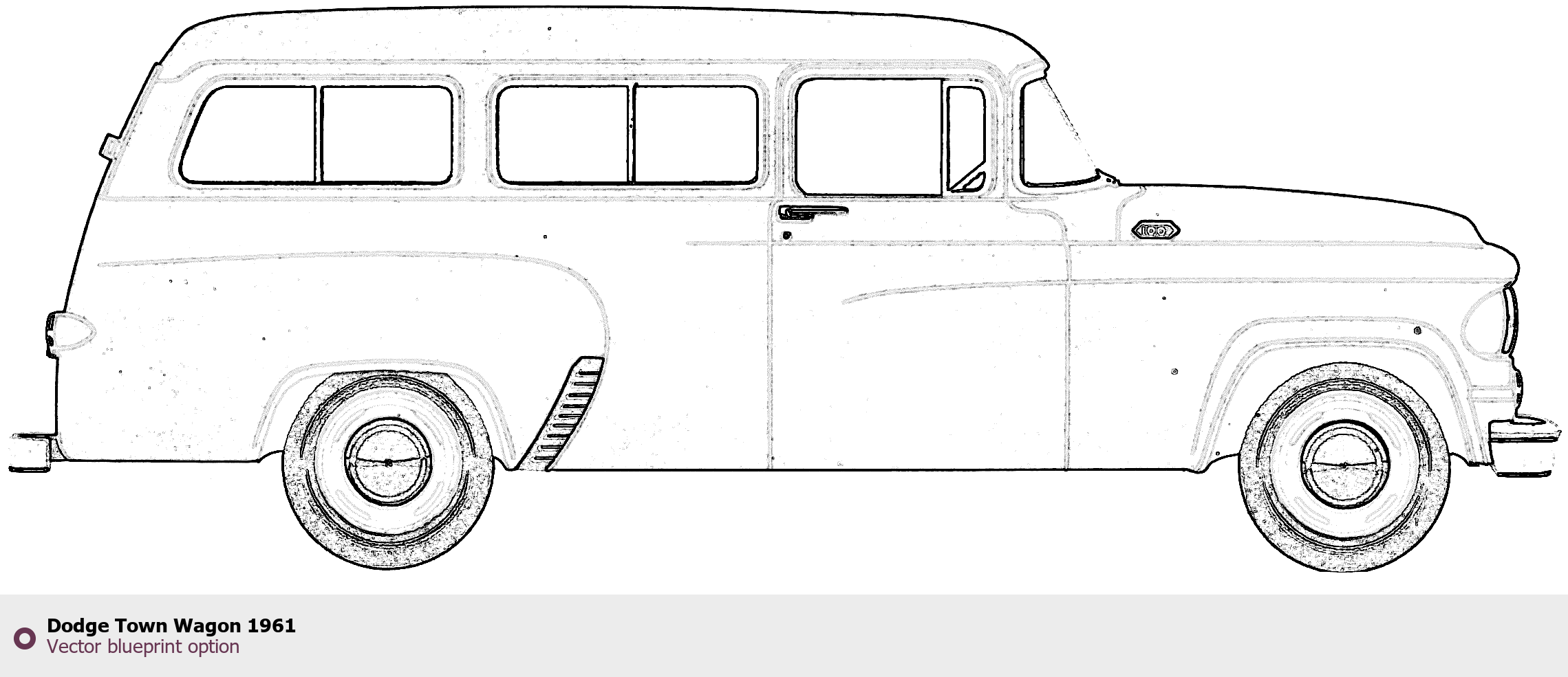 Raster blueprint of the 1961 Dodge Town Wagon Wagon. This free downloadable image can be used for graphic projects, digital design, and 3D modeling. The file provides accurate exterior proportions of the vehicle. Model year: 1961. Body type: Wagon.