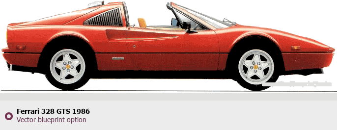 Raster blueprint of the 1986 Ferrari 328 GTS Tag. This free downloadable image can be used for graphic projects, digital design, and 3D modeling. The file provides accurate exterior proportions of the vehicle. Model year: 1986. Body type: Tag.