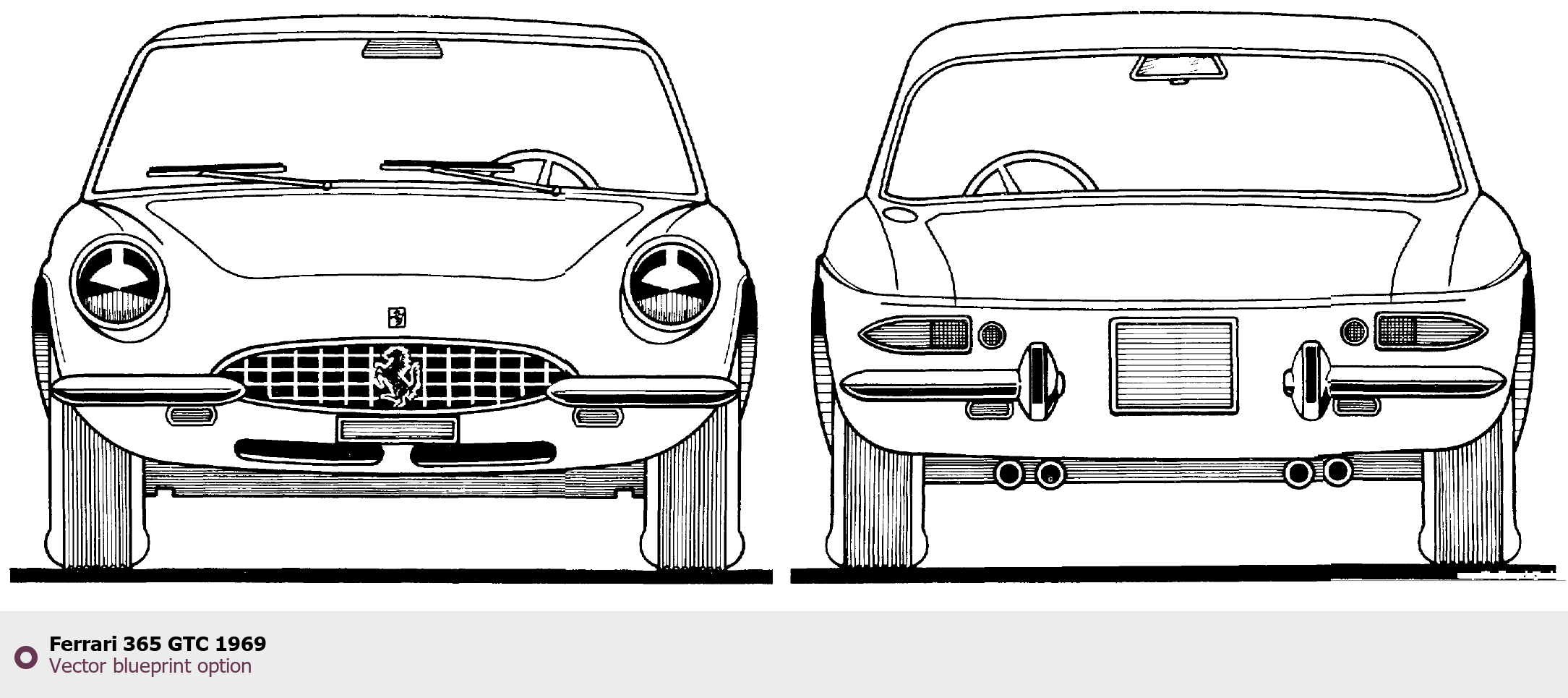 Raster blueprint of the 1969 Ferrari 365 GTC Tag. This free downloadable image can be used for graphic projects, digital design, and 3D modeling. The file provides accurate exterior proportions of the vehicle. Model year: 1969. Body type: Tag.