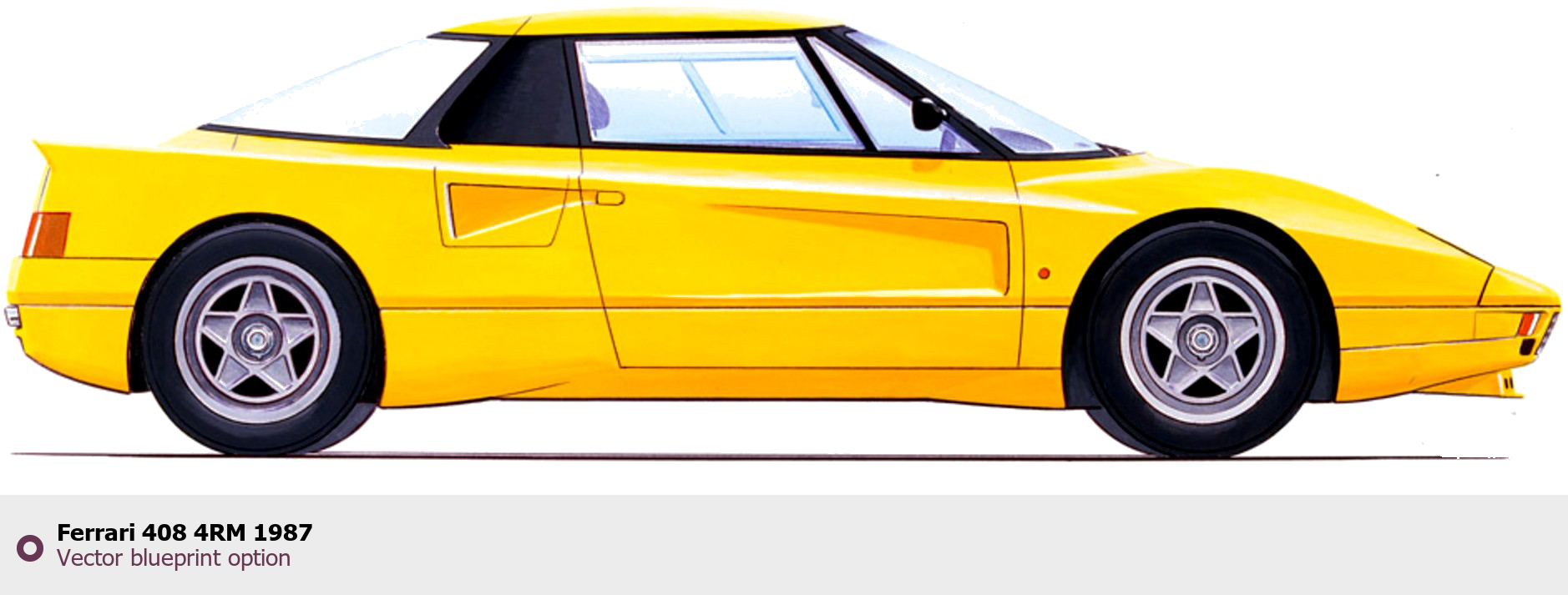 Raster blueprint of the 1987 Ferrari 408 4RM Tag. This free downloadable image can be used for graphic projects, digital design, and 3D modeling. The file provides accurate exterior proportions of the vehicle. Model year: 1987. Body type: Tag.