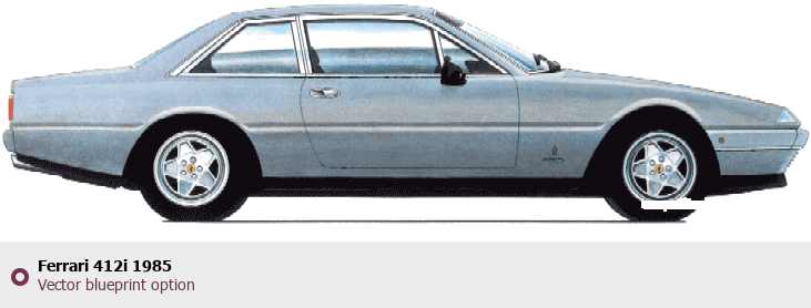 Raster blueprint of the 1985 Ferrari 412i Tag. This free downloadable image can be used for graphic projects, digital design, and 3D modeling. The file provides accurate exterior proportions of the vehicle. Model year: 1985. Body type: Tag.